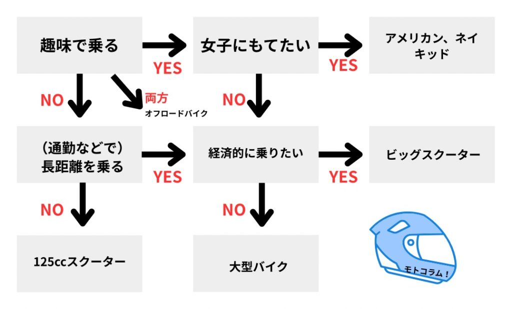 この二つの要素によって「あなたにおすすめのバイク」は大まかに絞られていきます。