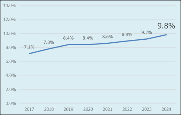 以下のグラフは警視庁公式サイトに掲載されている「胸部プロテクターの装着率」推移です。
