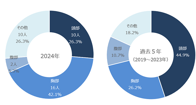 頭部を保護することは勿論ですが、2024年集計だけで見ると、頭部を上回るほどの割合で胸部損傷で命を落としている方がめちゃくちゃ多いんです。。