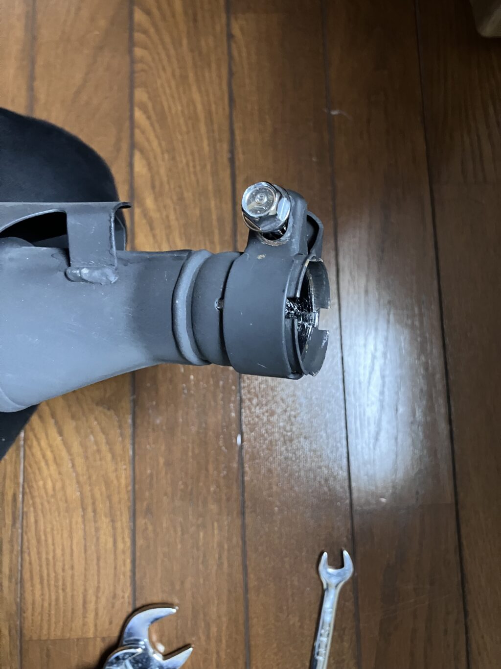 意外と硬いバンドなのでボルトをゆるめた後もテコの原理で輪っか部分を拡げないと外せないから気をつけて。