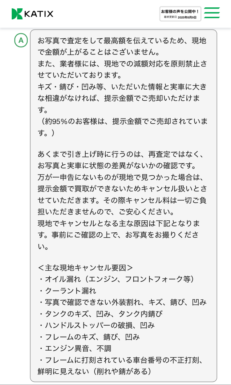 とはいえ、カチエックスは従来の他社バイク買取と比較してトラブルは少ないサービスです。