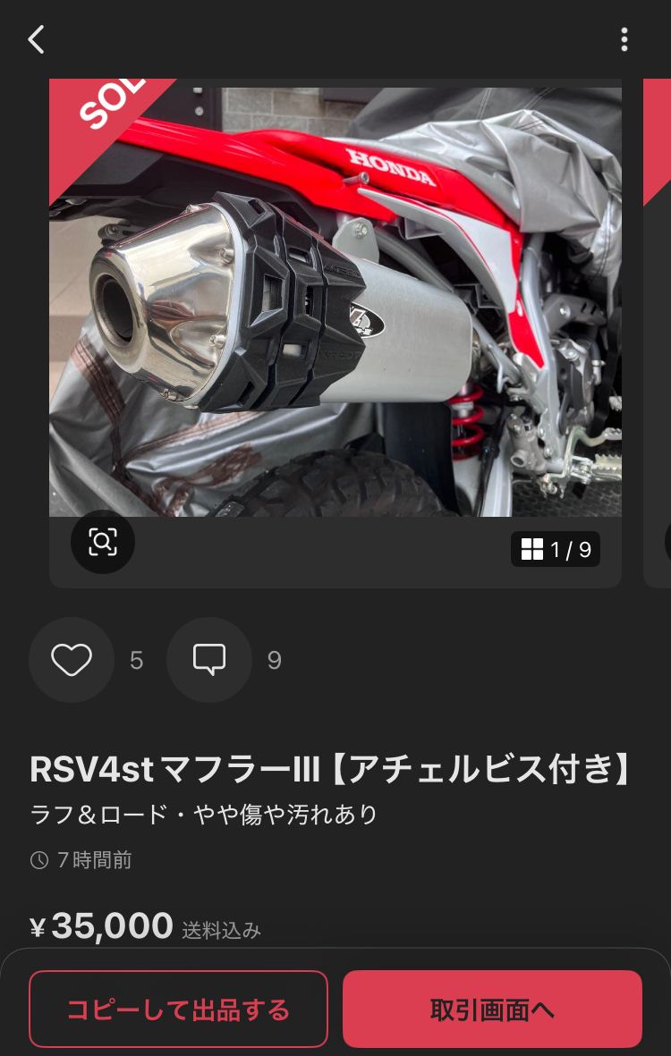 ものによっては出品した10分後に売却済みとかもざらにあったので、タイミングにもよりますがかなりのユーザーさんがバイク用品を常にチェックしているのかな?と感じました。